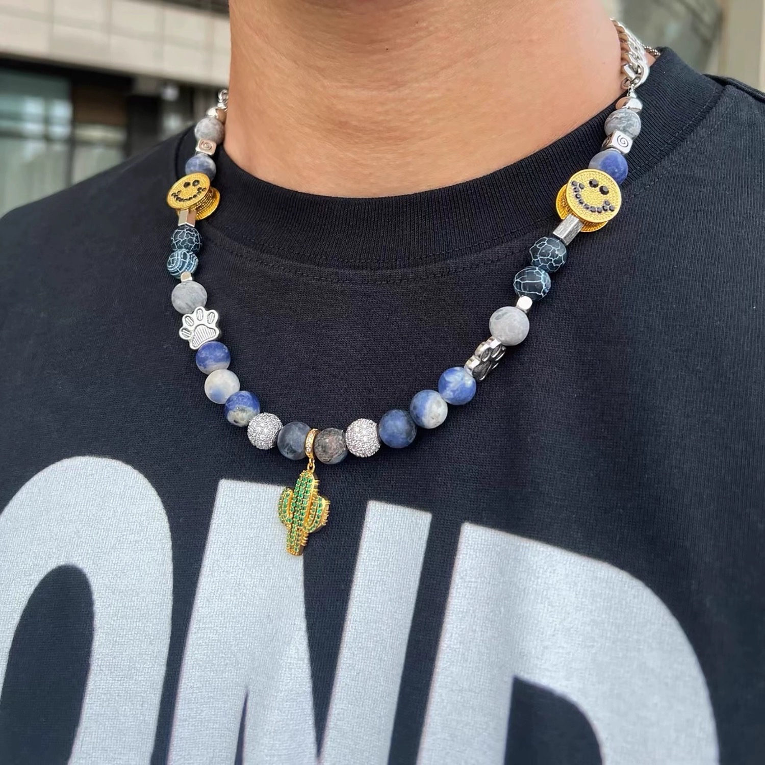Smiley face & Cactus turquoise necklace
